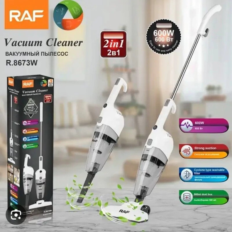 ⬅️ جاروبرقی عصایی ⬅️ برند: راف RAF ⬅️ مدل: R.8673 ⬅️ رنگ: سفید _ قرمز ⬅️ توان 600 وات ⬅️ جنس بدنه پلاستیک ABS ⬅️ فیلتر: سیلیکنی هپا ⬅️ تک سرعته ⬅️ حجم مخزن گردگیر: 0.5 لیتر ⬅️ طول سیم 4 متر