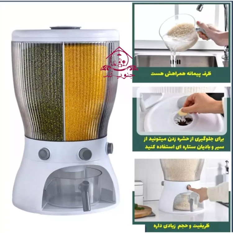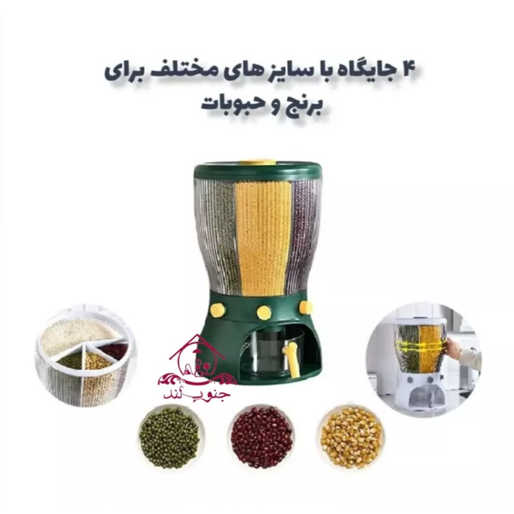 ⬅️ جا حبوباتی چرخشی ⬅️ رنگ بندی: سفید _ سبز ⬅️ ظرفیت مخزن حدود 10 کیلو ⬅️ قابلیت چرخش 360 درجه ⬅️ دارای 4 مخزن ⬅️ جنس بدنه پلاستیک از مواد PP غیر سمی و بود ⬅️ ابعاد: ( 27.5 * 27.5 * 44.5 ) ⬅️ دارای محفظه جهت گذاشتن سیر و بادیان ستاره ای جهت جلوگیری از حشره زدن ⬅️ دارای یک عدد پیمانه