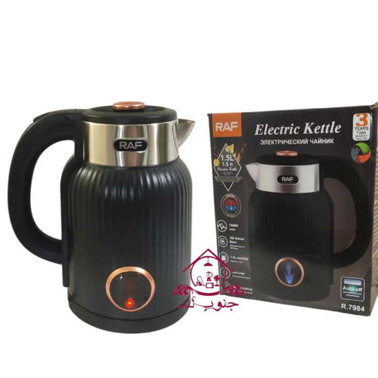 ⬅️ کتری برقی راف RAF ⬅️ مدل: R_7984 ⬅️ توان: 1500 وات ⬅️ مخزن کتری 1.5 لیتر ⬅️ دارای نمایشگر LED ⬅️ دارای قطع کن خودکار ⬅️ دارای حفاظت در مقابل گرمای بیش ازحد و جوش خشک ⬅️ بدنه دوجداره بیرون پلاستیک و داخلی استیل ضدزنگ ⬅️ قابلیت چرخش 360 درجه