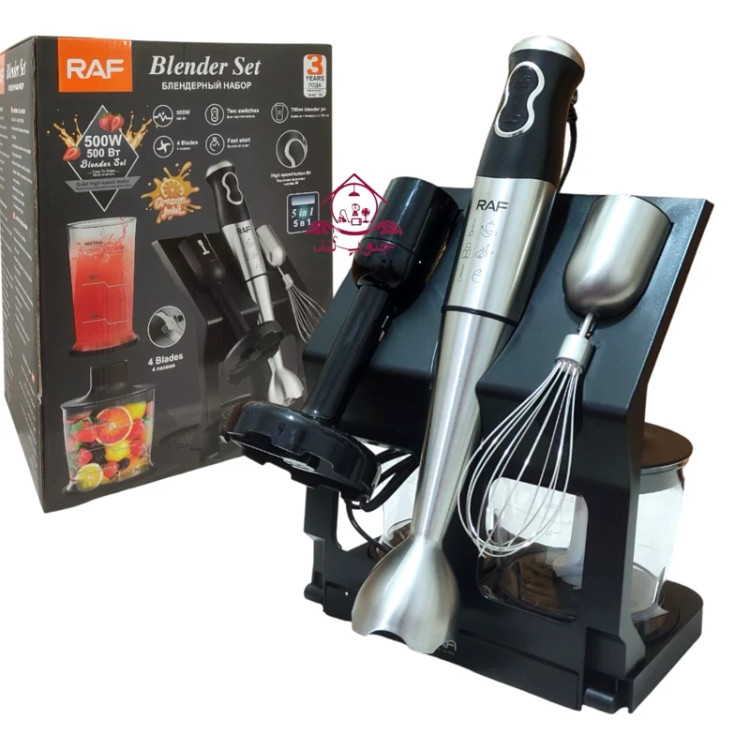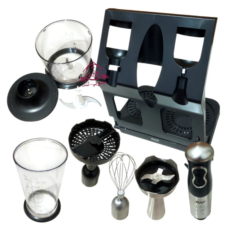 ⬅️ گوشت کوب و غذا ساز چندکاره ( 5 کاره) ⬅️ برند: راف RAF ⬅️ مدل: R_3004 ⬅️ چند منظوره ( مخلوط کن _ خردکن _ له کننده _ میکسر_ گوشتکوب) ⬅️ توان: 500 وات ⬅️ دارای پایه نگهدارنده ⬅️ حجم پارچ و بطری 500 و 700 میلی لیتر ⬅️ دو سرعته ⬅️ تیغه خردکن 4 پره استیل ⬅️ بدنه گوشتکوب استیل ضدزنگ