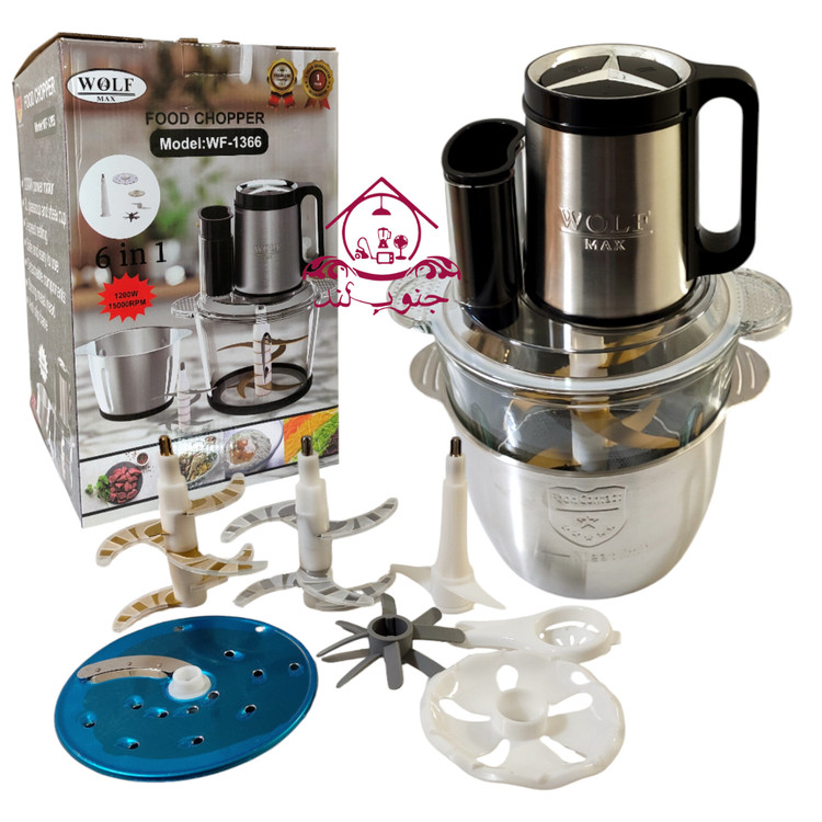 ⬅️ دارای 1ـ صفحه رنده 2ـ ورق کننده 3ـ سیر پوست کن 4ـ همزن 5ـ میکسر خمیر 6ـ خردکن