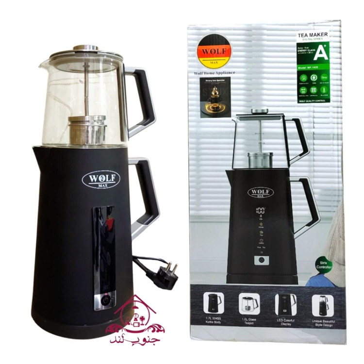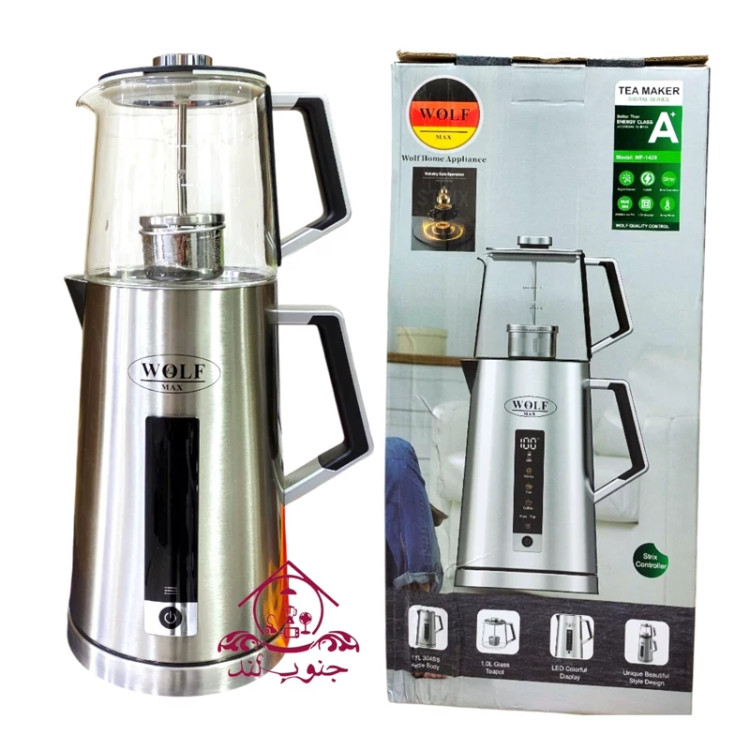 ⬅️ چایساز روهمی ولف WOLF ⬅️ مدل: WF_1420 ⬅️ کیفیت: فوق العاده عالی 👌 ⬅️ در 2 طرح: مشکی و استیل ⬅️ بدنه دو جداره ، داخلی استیل قالبی ⬅️ بدنه استیل 303 ⬅️ ظرفیت کتری 1.7 لیتر و قوری 1 لیتر ⬅️ صفحه نمایش لمسی با منو LED رنگی ⬅️ جنس بدنه قوری پیرکس ضخیم ⬅️ دارای ترموستات استریکس ⬅️ دارای گرم نگهدارنده چای و دمنوش ⬅️ حفاظت و خاموش شدن در صورت کار بدون آب ⬅️ دارای تفاله گیر استیل متحرک ⬅️ توان: 1500 وات
