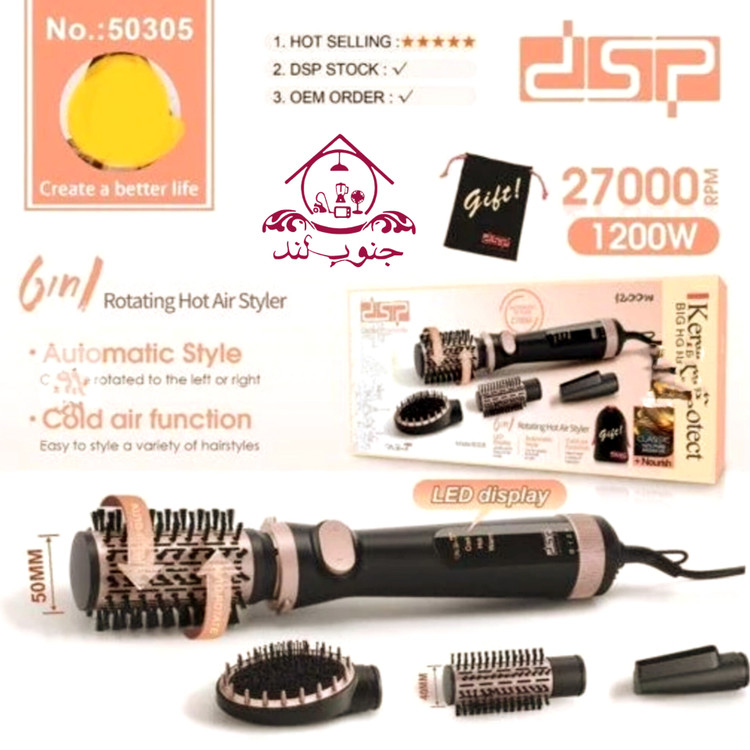 ⬅️ لوازم جانبی: ۱ـ برس گرد سایز 50 ۲ـ برس گرد سایز 40 ۳ـ برس ماساژ مو ۴ـ سری نازل هوا ۵ـ کیسه همراه